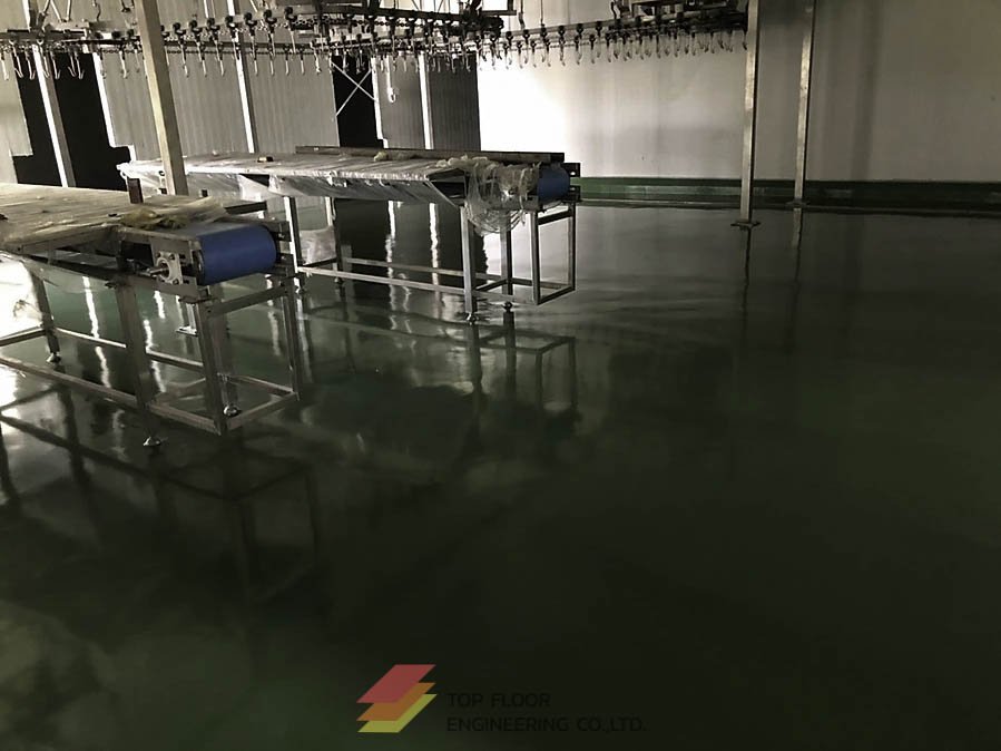 เป็นการเคลือบพื้นผิวโรงงานอาหารหรือโรงงานห้องเย็นอุตสาหกรรมต่างๆ ที่ถูกออกแบบมาเฉพาะ สําหรับโรงงานอุตสาหกรรมอาหารที่ผิวคอนกรีตจะต้องได้รับการป้องกันจากสารเคมี อาทิเช่น กรดอินทรีย์ กรดอนินทรีย์ กรดเกลือและด่างประเภทต่างๆ สามารถใช้งานได้ดี ในบริเวณที่มีน้ำไหลผ่านตลอดและอุณหภูมิ (-40 ถึง 120 องศา) Polyurethane concrete MF/HF มีส่วนประกอบหลักเป็นตัวโพลียรีเทน คอนกรีตจึงเป็นวัสดุที่มีความแข็งแรงทนทานเป็นพิเศษ อีกทั้งยังสามารถทนแรงกระแทกได้ดี ป้องกันการเพาะเชื้อโรคและอุณหภูมิที่เปลี่ยนแปลงตลอดจนห้องเย็นต่างๆได้อย่างดี